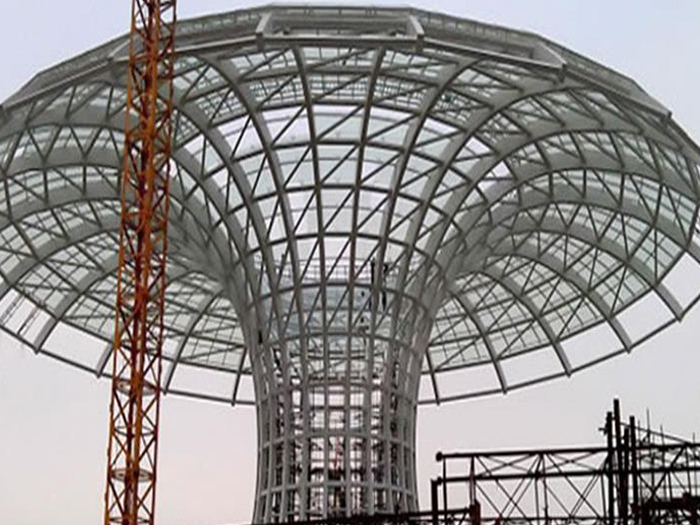 二、球形网架结构因其结构新颖,受力合理,自重轻、用钢量低等优点。如大型体育场馆球形昆山螺栓球网架、公共场馆球形网架、电厂昆山螺栓球网架、水泥工业球形网架、仓储物流球形网架、昆山干煤棚工业球形网架、昆山收费站昆山加油站球形网架、展览中心、影剧院、商场、航站楼、候车厅、工厂昆山车间、仓库、电视塔等球形螺栓球节点网架。国内球形网架结构主要分为:昆山焊接球节点网架及螺栓球节点网架两种。螺栓球节点网架其构件工厂内加工量较大,现场安装便捷,适用于现场工期紧,昆山施工条件、用电量受制约,网架形状复杂、昆山杆件定位困难的异形结构。螺栓球节点球形网架系统基本由昆山杆件、螺栓球、支撑支座等组成。按照节点形式可分为交叉昆山桁架体系、四角锥体系、三角锥体系等。支撑方式多为固定支座支撑。对于大面积、大跨度及有特殊受力或伸缩要求的网架结构可采用橡胶支座、滑移支座、球铰支座等支撑形式,以满足结构自身的受力稳定、均衡,便于内力释放等设计要求。